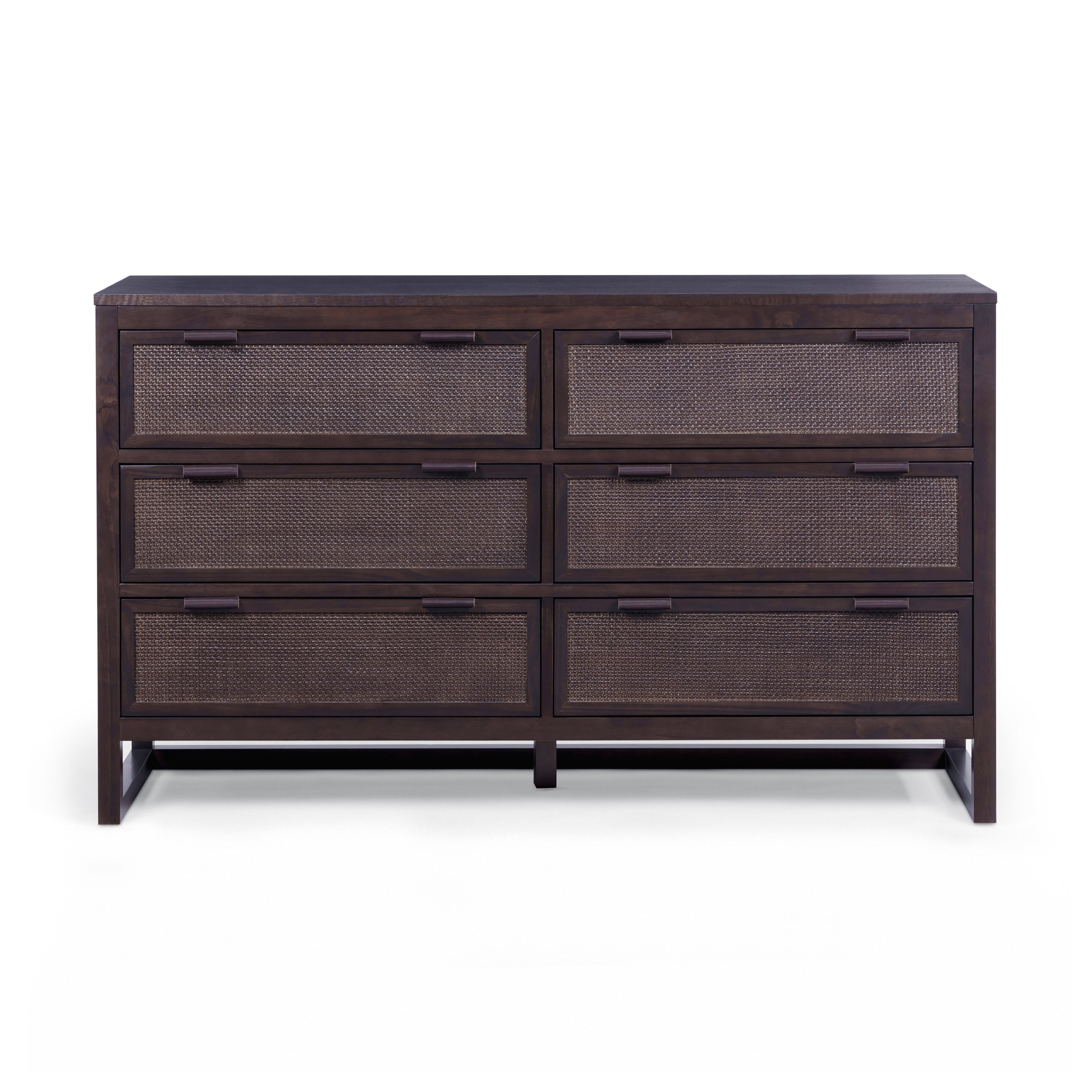 Six-Drawer Storage Layout: Wide dresser design provides ample space for clothing, linens and accessories while keeping items neatly organised.