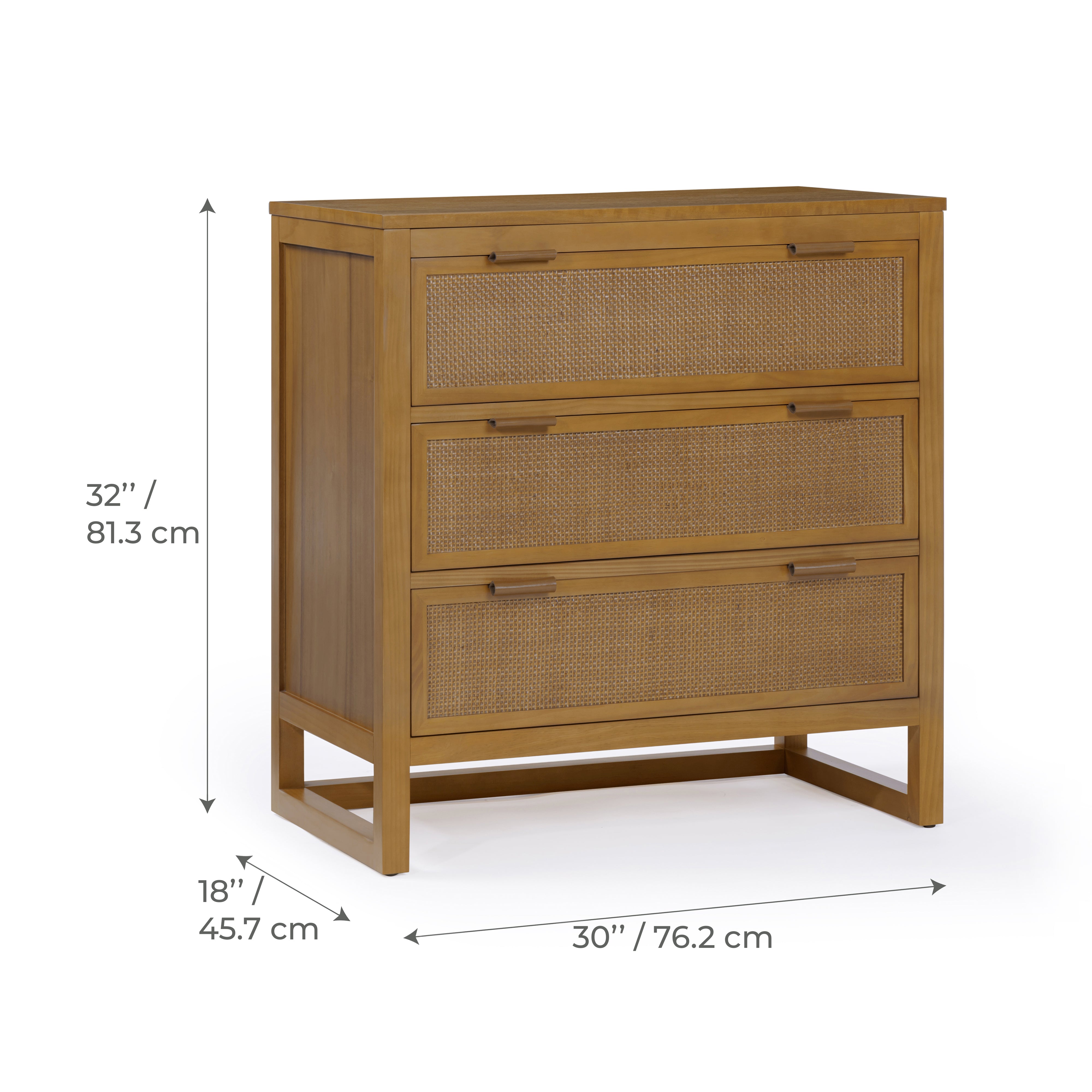 Teamson Home Hatteras Bedroom Dresser 76cm wide with 3 Rattan Inset Drawers, Natural