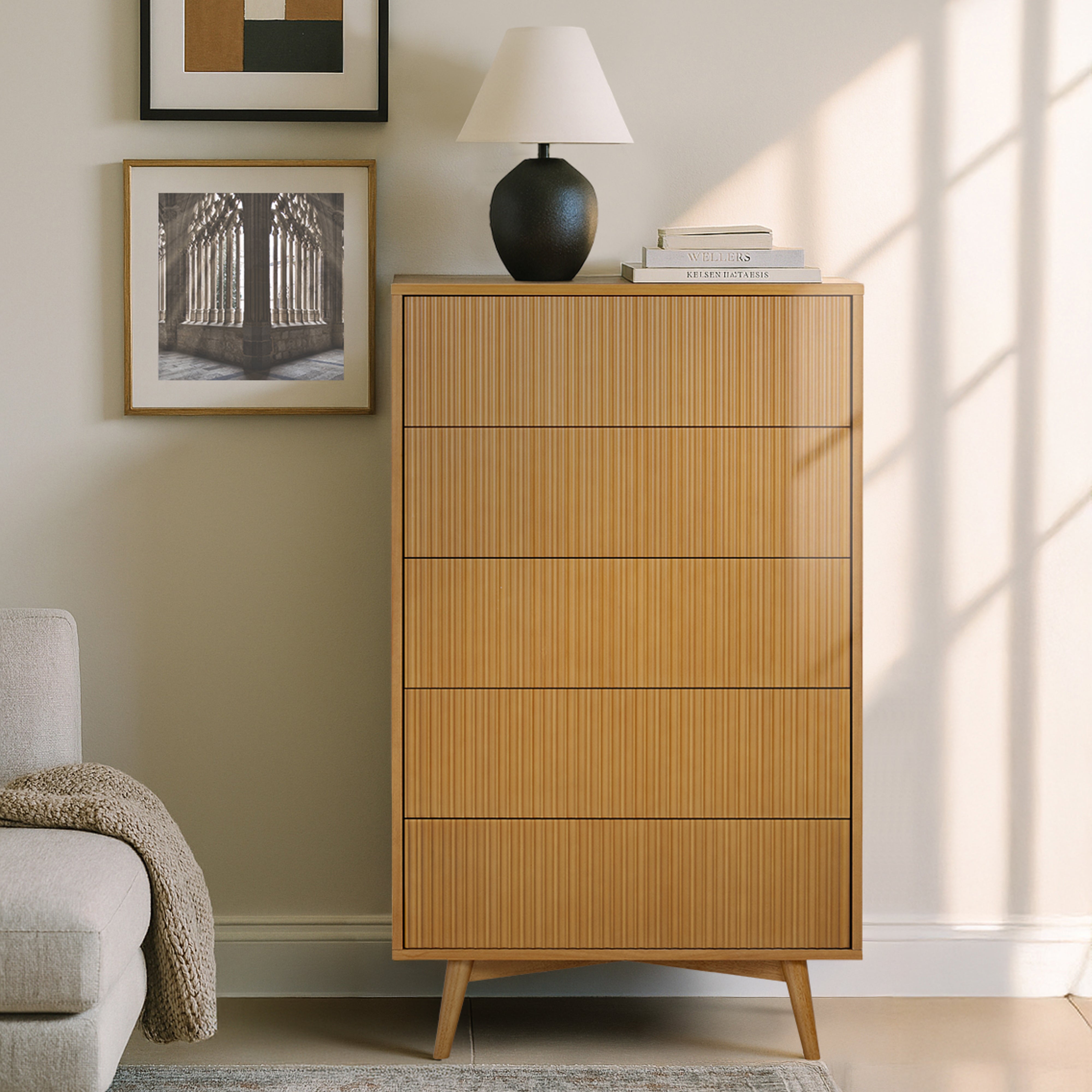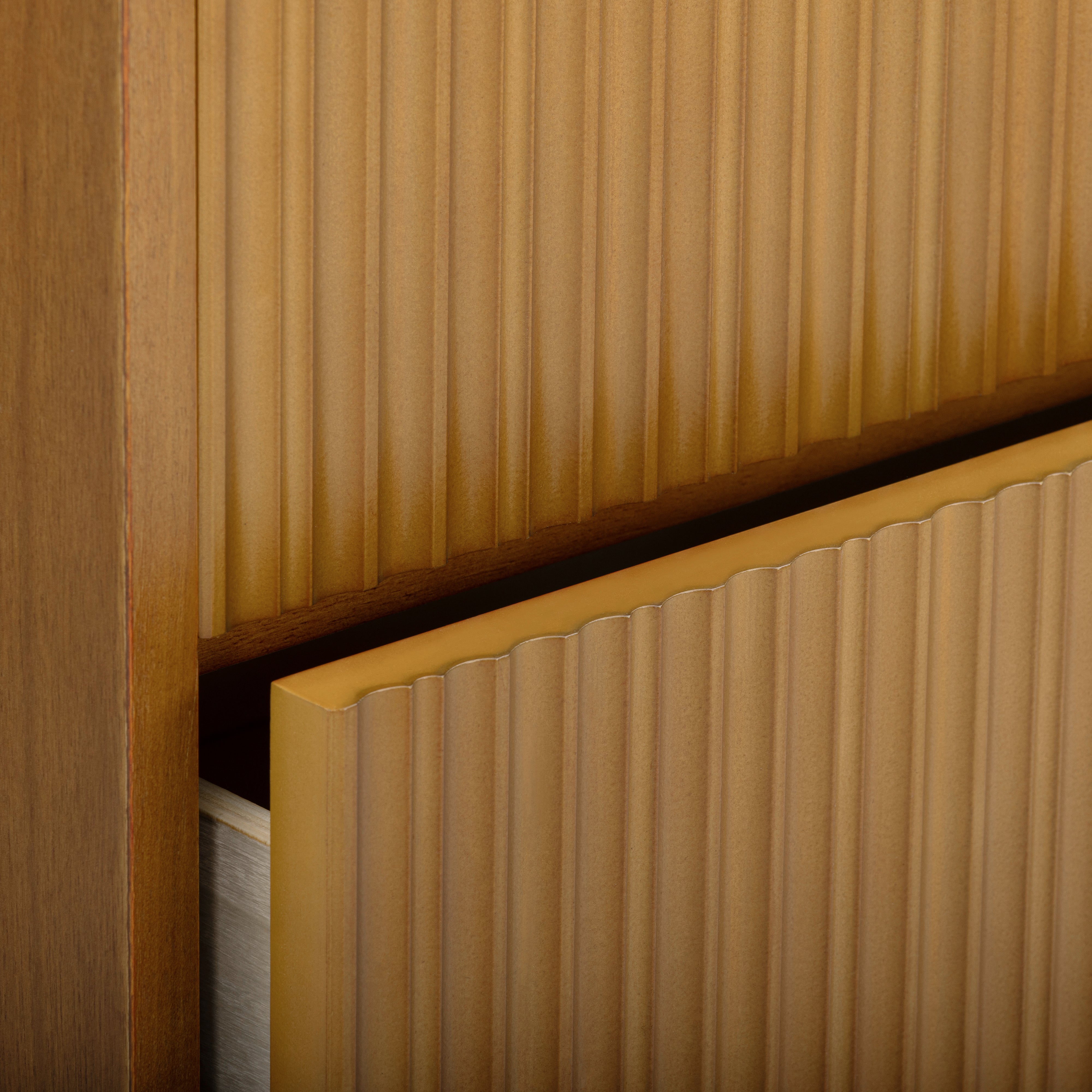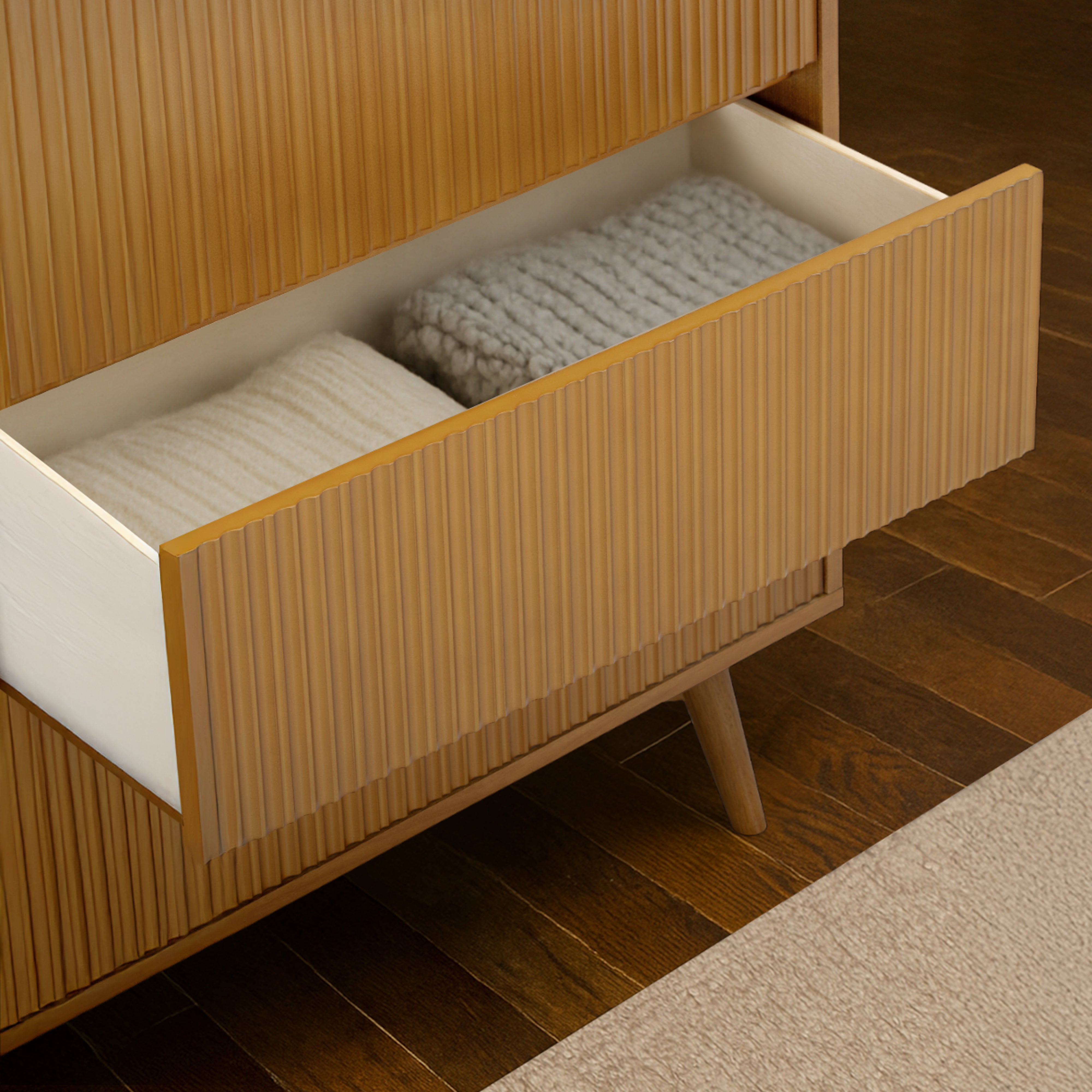 Fluted Drawer Texture: Subtle vertical grooves add character and elevate the minimalist silhouette.