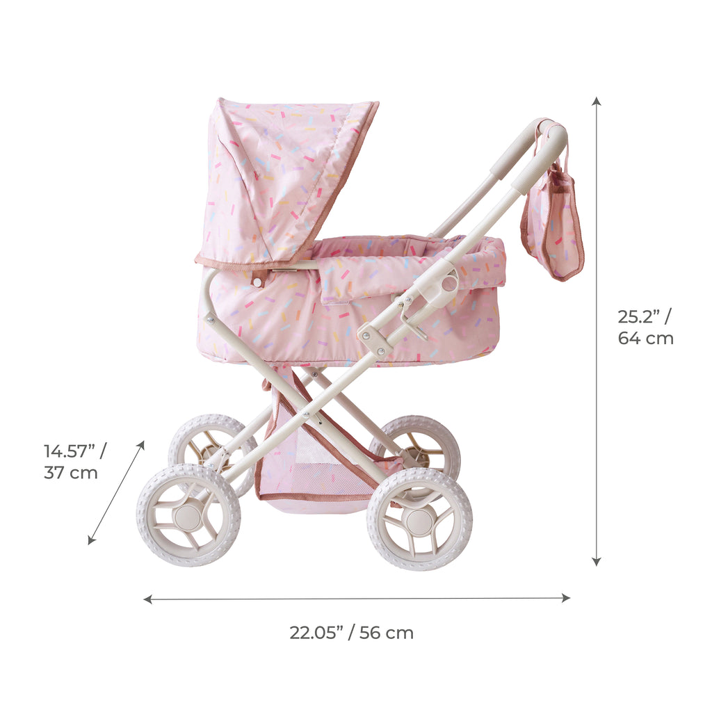 15-18 Inch Baby Doll Stroller, Beige - Confetti Doll Classic Stoller by Olivia's Little World