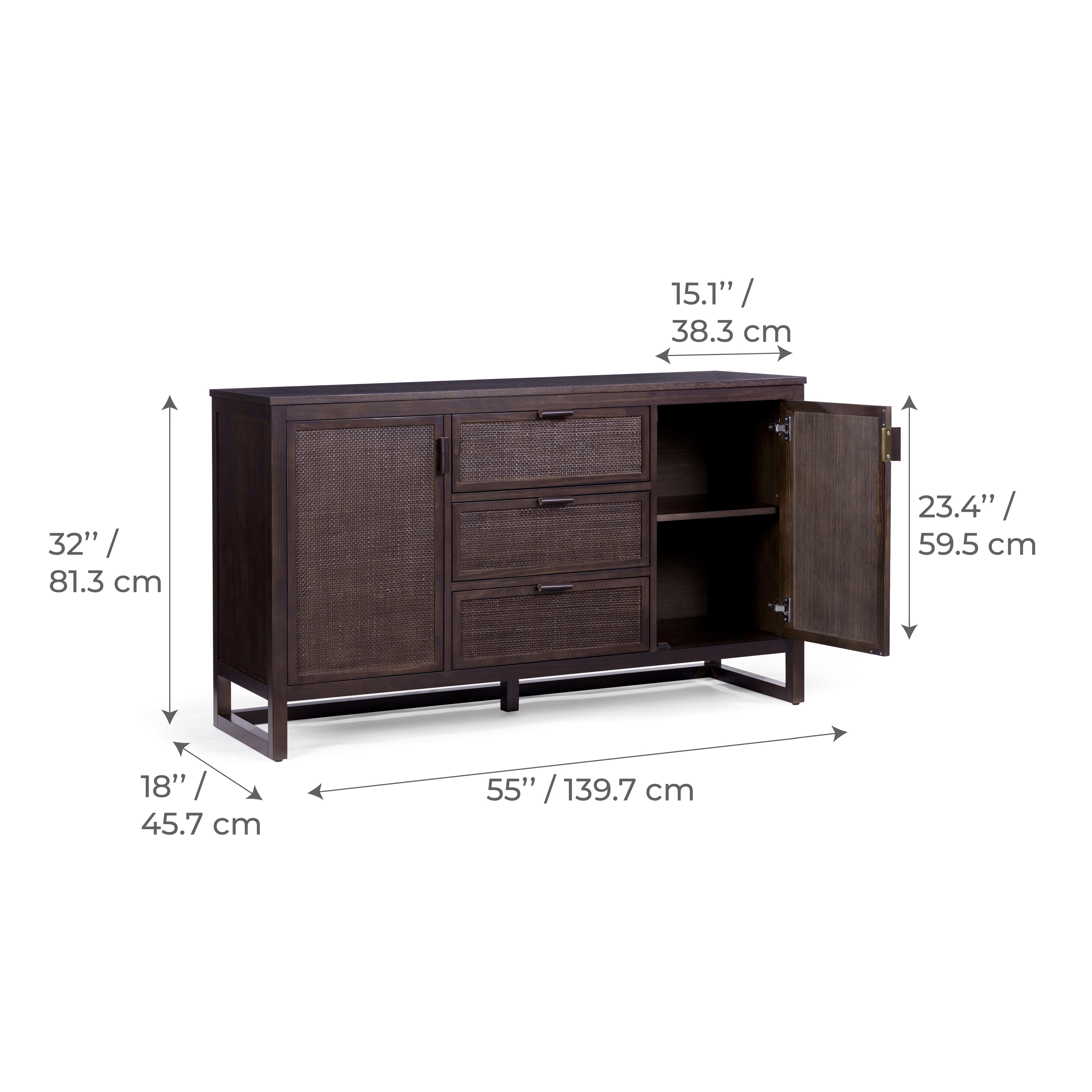Rattan-inlay doors soften the overall look, introducing texture and natural character. Soft-close doors and stable feet support comfortable daily use. Designed for dining rooms, living areas or hallways, this sideboard keeps clutter neatly contained while enhancing the look and function of your space.