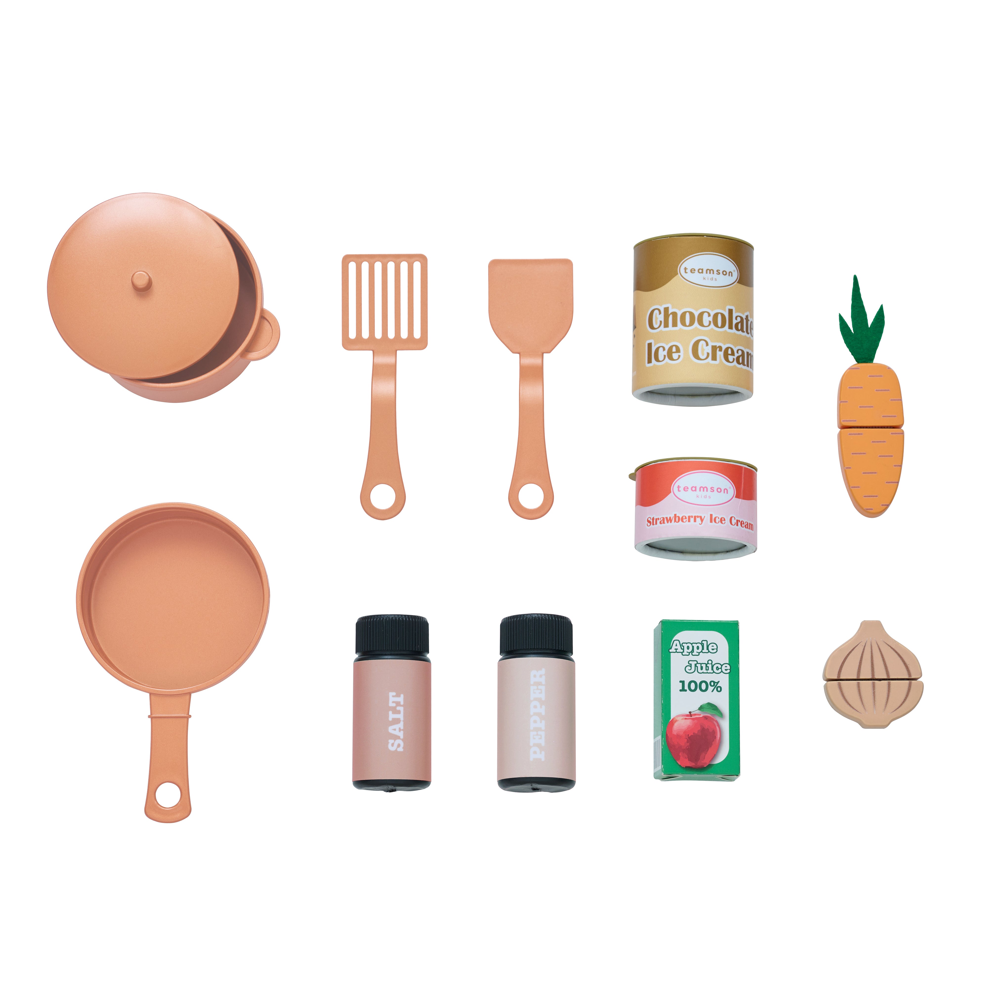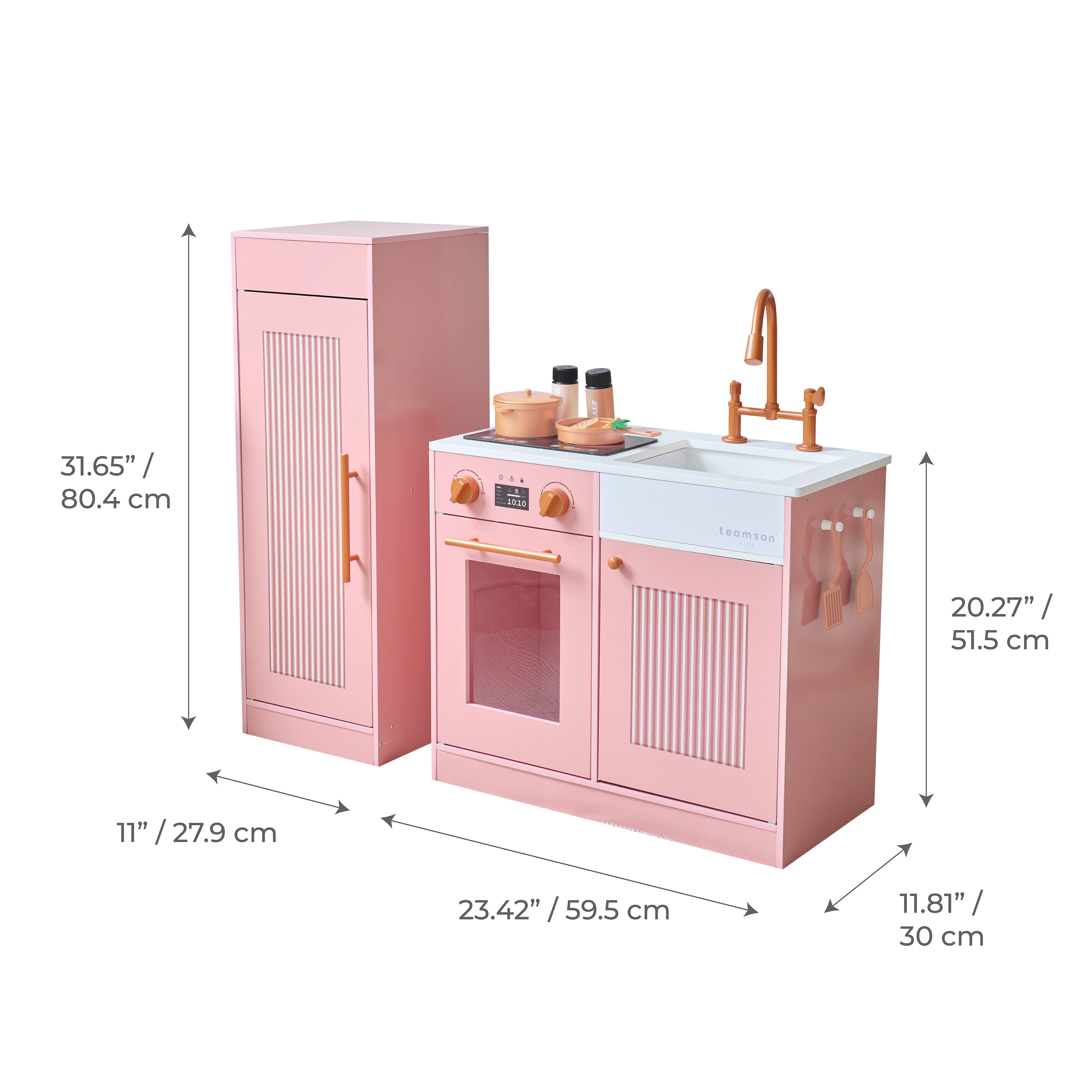 Wooden Play Kitchen with 12 Accessories, Peach - Little Chef Chester by Teamson Kids